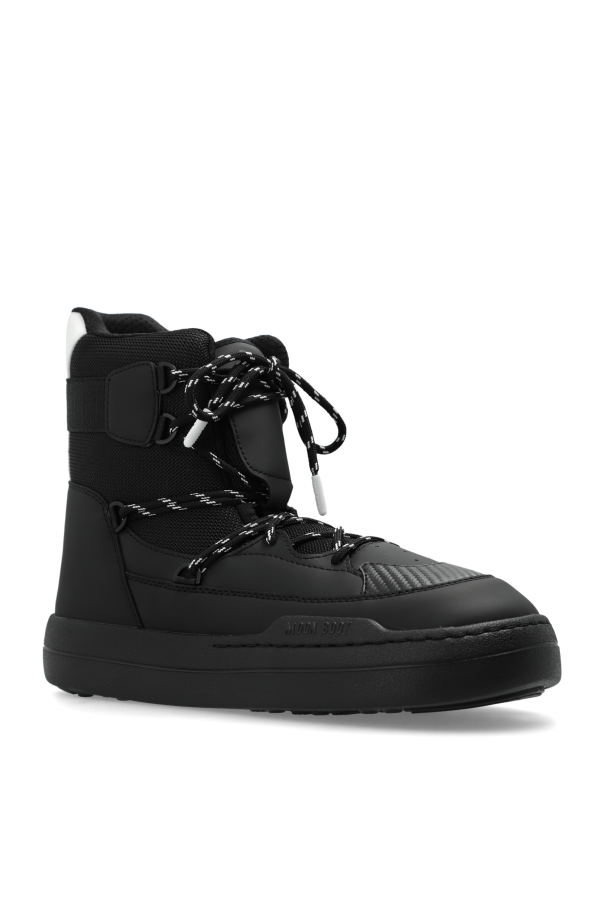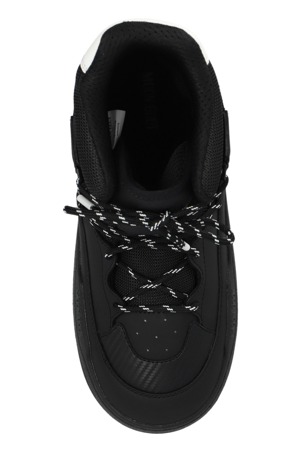 Introducing the exclusive men's Park Sneaker Boot, a paragon of winter elegance and functionality. These sophisticated snow boots rise above the ankle, offering superb insulation against the cold while ensuring unparalleled stability and comfort with their high heel counter and broad outsole. Crafted from premium dark black materials, combining synthetic and textile elements, the interior is lined with a plush material to provide exceptional comfort and thermal insulation. The striking black-and-white laces add a touch of style, allowing for a customized fit. The iconic "Moncler" branding on the side further accentuates their luxury. The robust rubber sole with a pronounced tread ensures superior grip on slippery surfaces, while the white accents on the heel may serve a decorative or reflective purpose. Additional reinforcements on the tongue and sides offer extra protection against wear and harsh weather conditions. Why Choose This Product? Exclusive design with Moncler branding High-quality materials for durability and comfort Excellent thermal insulation with plush interior lining Superior grip with solid rubber outsole Stylish black-and-white laces for a custom fit