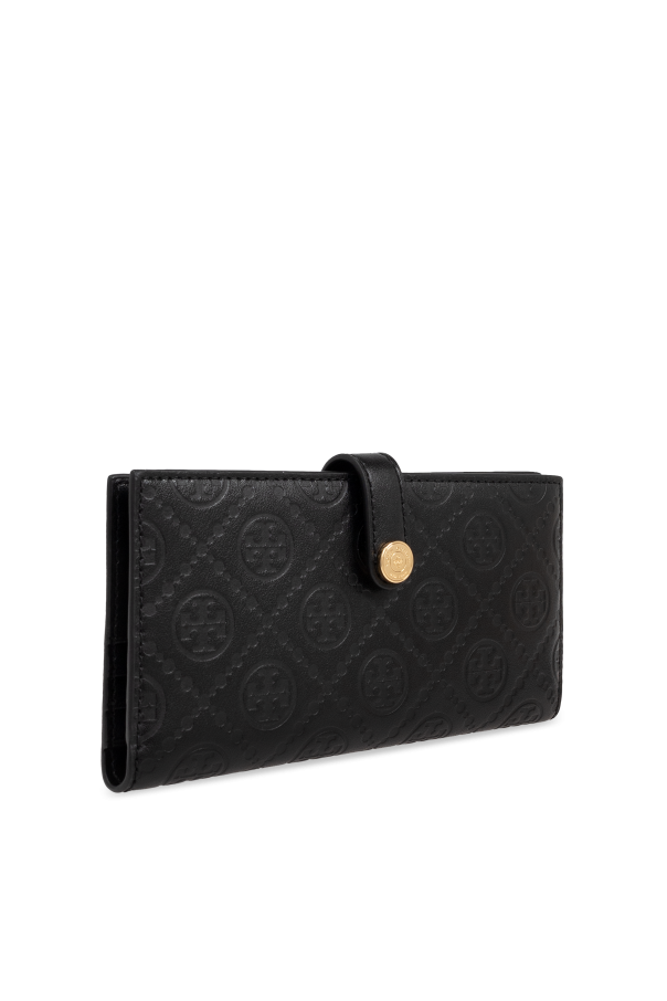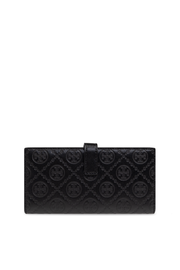 Introducing the Tory Burch Leather Wallet, a masterful blend of elegance and modernity from the exclusive fashion house of Tory Burch. This rectangular wallet, adorned with a flap secured by a strap and snap closure, epitomizes sophistication with its meticulously embossed exterior featuring repetitive round motifs of the designer's emblem. Crafted from premium leather, both the exterior and interior of the wallet exude luxury and durability. The sleek black color enhances its timeless and versatile appeal, making it an essential accessory for any refined wardrobe. The wallet's interior is thoughtfully designed to include multiple card slots, two bill compartments, and a zippered coin pocket, ensuring your essentials are organized with utmost precision. The strap closure is accentuated by a gold button engraved with the designer's logo, adding a touch of opulence. This wallet, designed specifically for women, falls under the category of accessories, specifically wallets and cardholders. It is a testament to the brand's commitment to high-quality craftsmanship and functional elegance. Why Buy This Product? Exquisite design by the renowned Tory Burch. High-quality leather construction for durability and elegance. Ample storage with twelve card slots, two bill compartments, and a zippered coin pocket. Classic black color for a versatile and timeless look. Gold button with engraved logo for a touch of luxury.