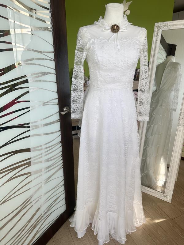 Винтажное безупречное английское свадебное платье из кружева (60-80гг). Платье привезено из США.