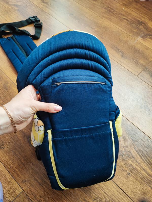 Короткое описание: Состав 100% хлопок, наполнитель поролон, жесткая спинка (вынимается при необходимости). Регулируется в зависимости от роста и веса малыша.Рюкзак