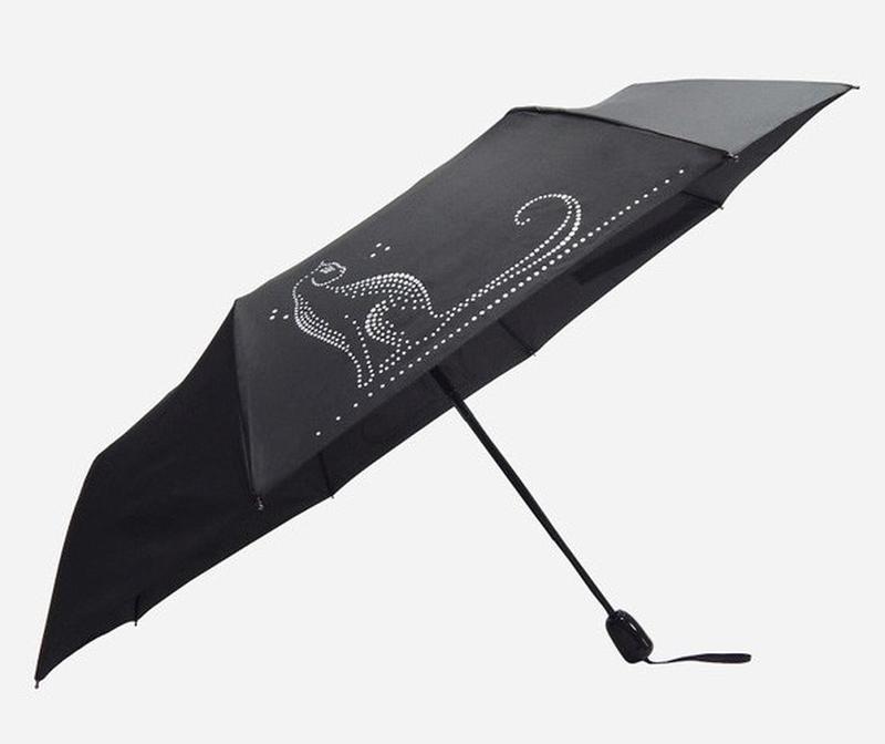 серебристым котиком на двух клиньях. Зонт легкий и компактный, весит всего 340