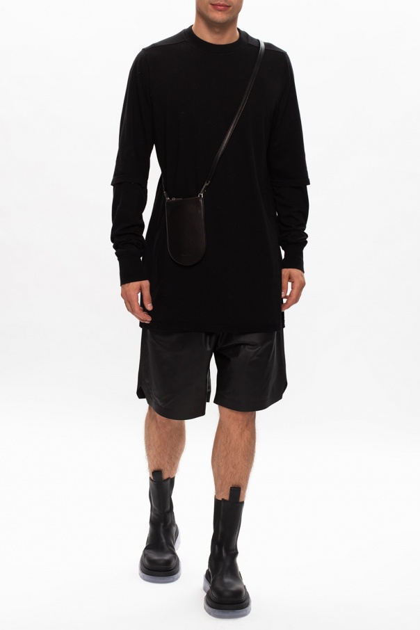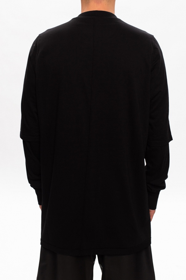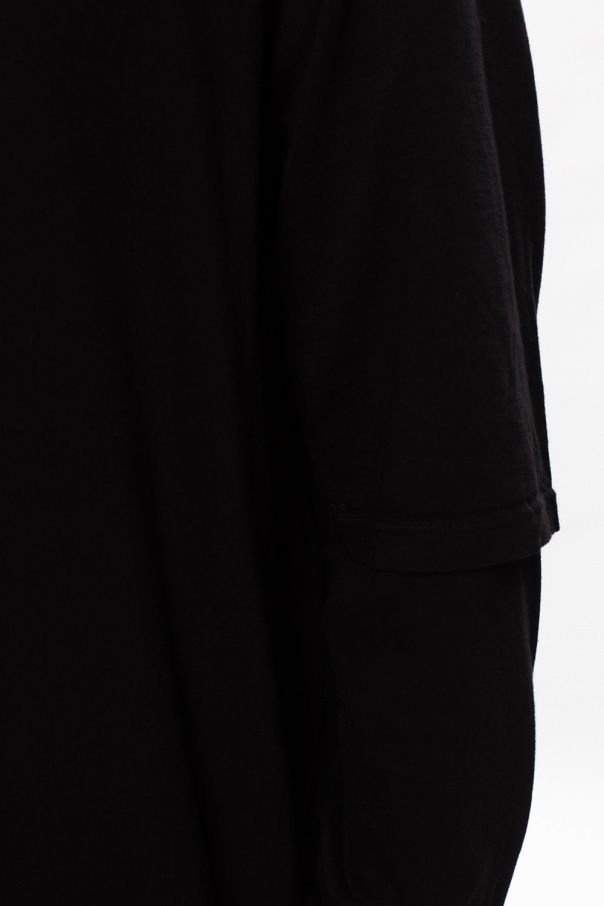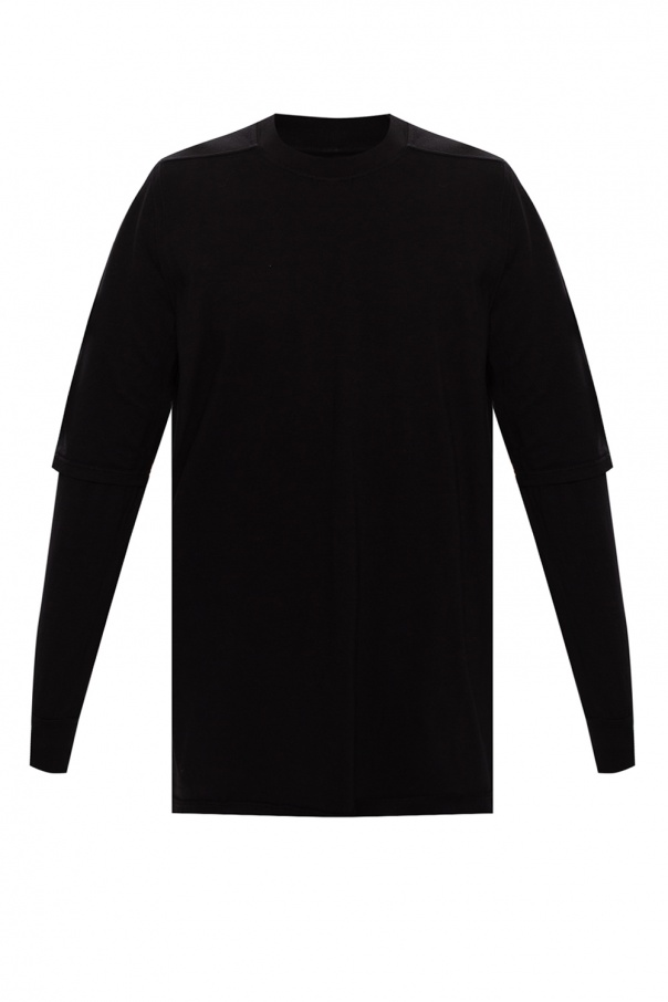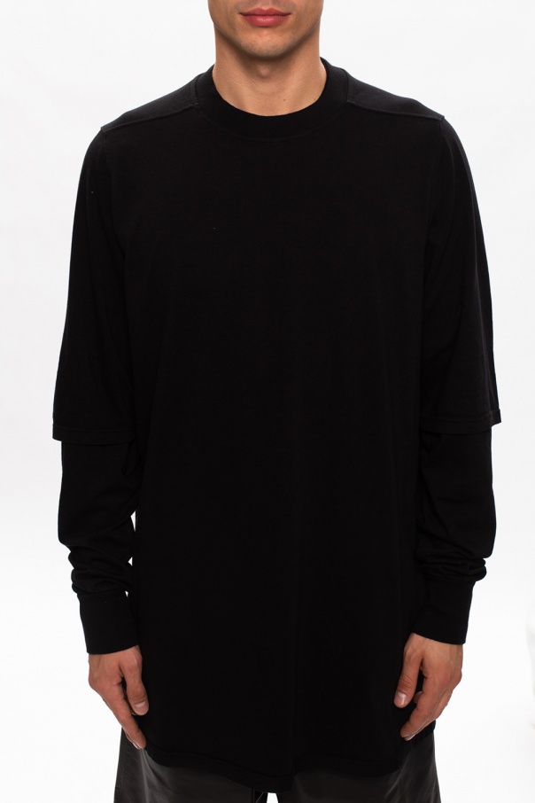 Black double-layered T-shirt from Rick Owens DRKSHDW. Featuring distinctive seams, this cotton-crafted style is complete with a round neck and long sleeves with elasticated cuffs.
