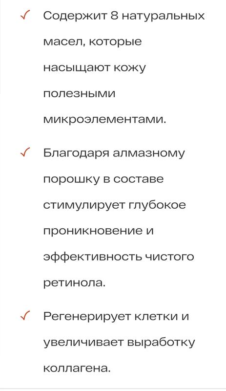 8 дополнительных масел балансируют агрессивное действие ретинола, увлажняют, снимают воспаление.