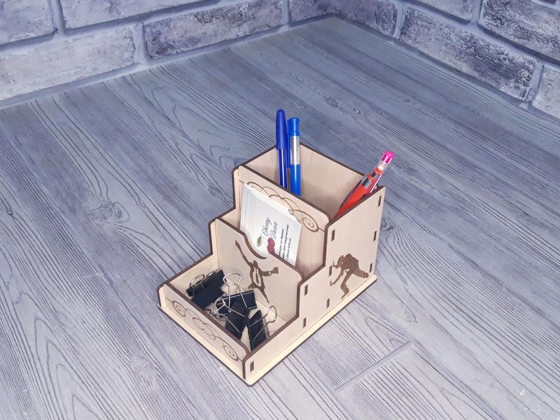 работников, которые очень часто находятся в беспорядке либо и вовсе теряются.Деревянный органайзер для канцелярских принадлежностей - простой, но очень