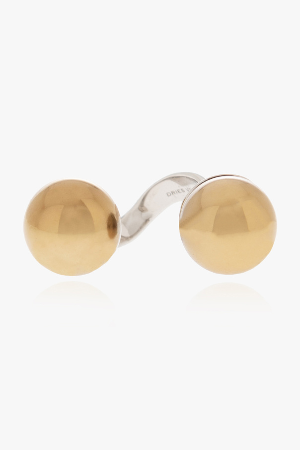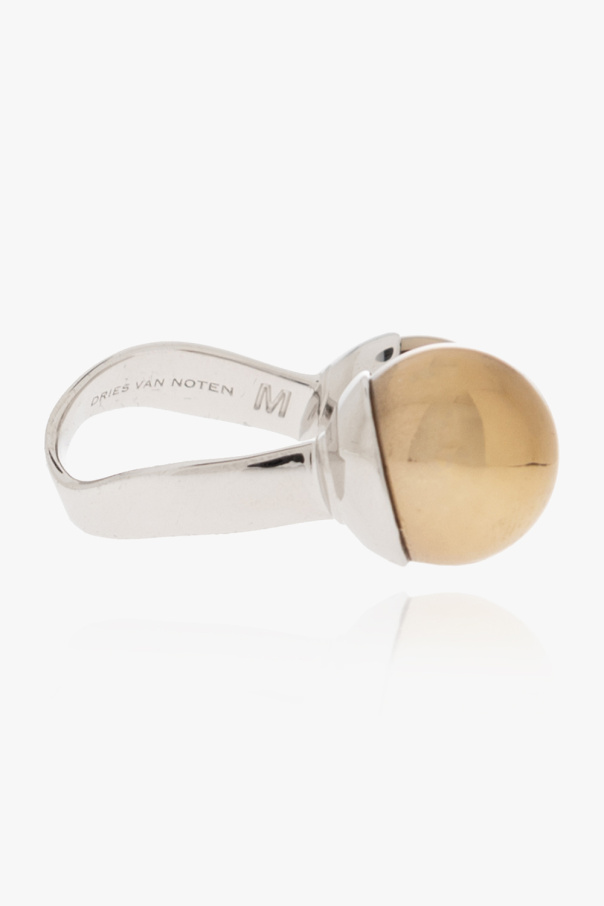 Set of silver-tone rings from Dries Van Noten. Made in part from brass, each item is decorated with round gold-tone elements, including one transparent element in pink.