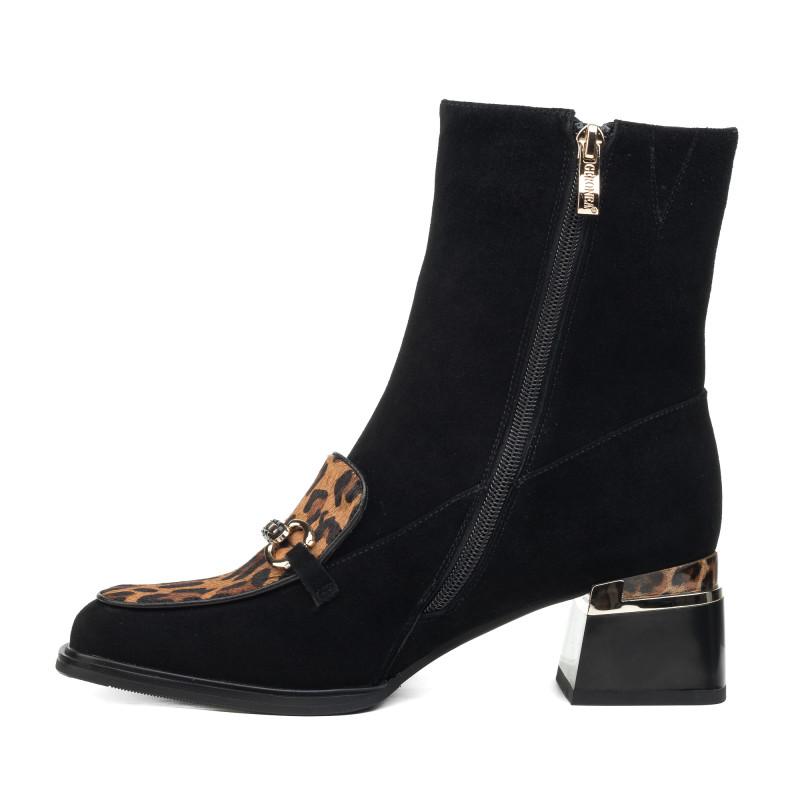 Матеріал верху:Замша ,Висота каблука:Середній ,Висота виробу:Середні ,Застібка:Замок ,Тип підбору:Квадратний ,Сезон:Осінь , Весна , Демісезон ,Матеріал підкладки:Фліс ,Принт:Леопардовий ,Тип підошви:Каблук ,Опис