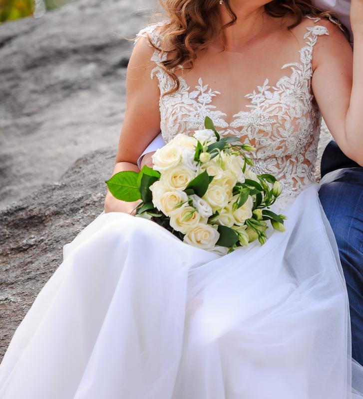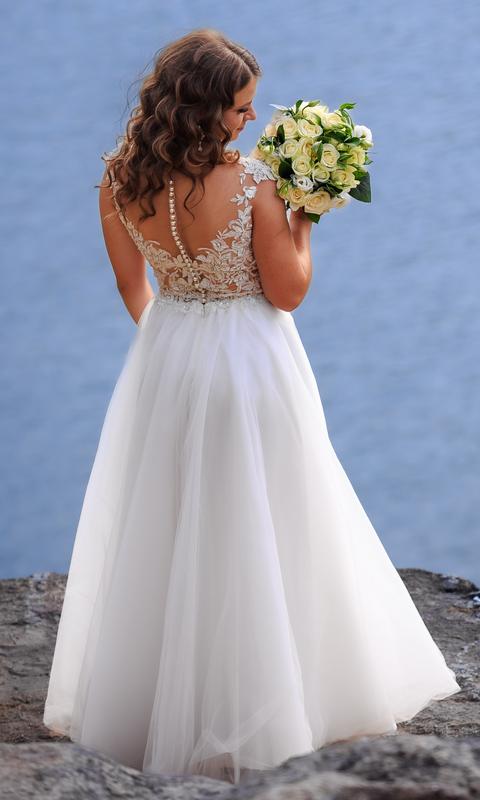 весільна сукня в ідеальному стані. низ фатин, верх вишитий.