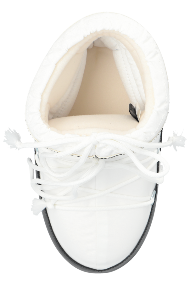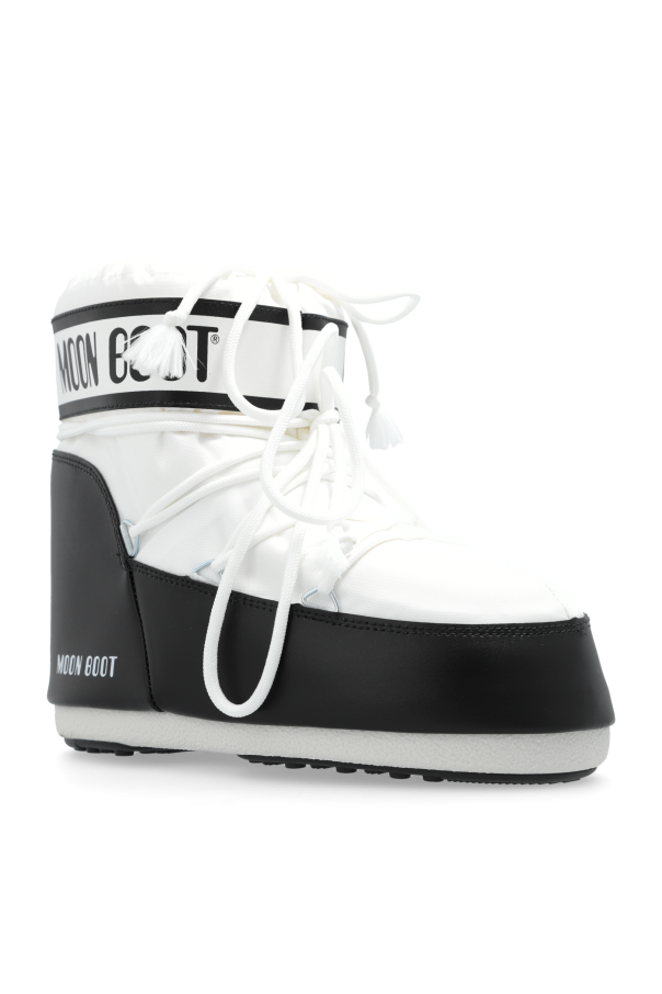 Introducing the exquisite Icon Low Nylon snow boots by the prestigious fashion brand Moon Boot. These boots epitomize the perfect blend of style and functionality, making them an essential addition to your winter wardrobe. The Icon Low Nylon boasts a classic, slightly rounded shape with a high, sturdy sole that ensures excellent insulation and grip on snowy terrains. The boots feature a voluminous shaft, providing extra warmth and comfort during wear. Crafted with premium materials, the upper part of these boots is made from durable nylon, rendering them waterproof and weather-resistant. The lower part is constructed from high-quality rubber, offering additional protection against moisture and cold. The elegant design is predominantly white, accented with striking black elements on the lower section. A bold white stripe with the iconic black "MOON BOOT" inscription adorns the upper shaft, while the logo is also prominently displayed on the side and back of the boot. Secured with white laces intricately woven for a snug fit, these boots ensure both style and functionality. The interior is lined with a soft, light-colored material for added comfort and thermal insulation, while the anti-slip sole guarantees superior traction on slippery surfaces. Why Choose This Product? Exclusive design by Moon Boot, a renowned fashion brand. Waterproof and weather-resistant nylon upper. Durable rubber lower part for enhanced protection. Voluminous shaft for extra warmth and comfort. Bold and stylish logo detailing. Soft, insulating interior lining. Anti-slip sole for excellent grip.
