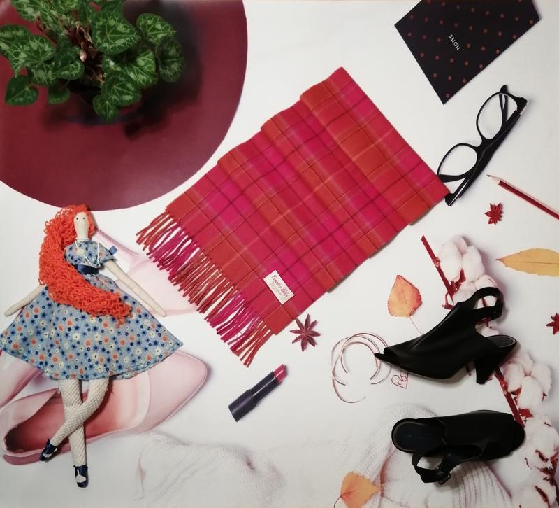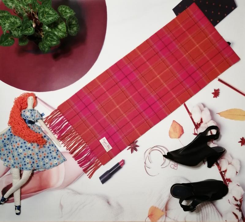 Цвета в шарфике-оранжевый розовый коричневый желтый бледно-голубой
