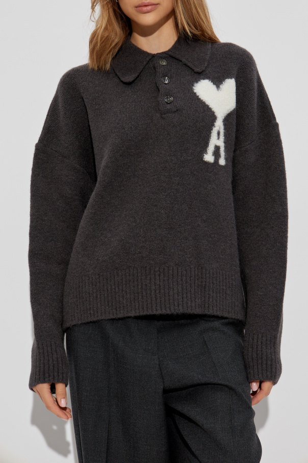 Introducing the Gray Polo Sweater from the exclusive collection by Ami Alexandre Mattiussi. This luxurious knitwear piece epitomizes elegance and comfort, featuring a classic polo collar and button closure. Crafted from a sumptuous blend of alpaca wool, polyamide, wool, and elastane, this sweater provides exquisite warmth and softness, making it an ideal choice for cooler days. The design boasts long sleeves with broad cuffs and a relaxed fit, ensuring unparalleled comfort. The centerpiece of this sweater is the striking white embroidered heart with the letter "A" on the left chest, adding a distinctive and sophisticated touch. The hem and cuffs are finished with wide, elasticated ribbing, enhancing the structure and shape of the garment. Why Choose This Product? Luxurious blend of high-quality materials Elegant and comfortable design Distinctive white embroidered heart detail Classic polo collar with button closure Wide, elasticated ribbed hem and cuffs for added structure