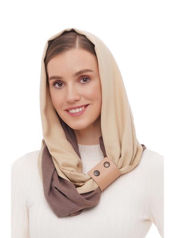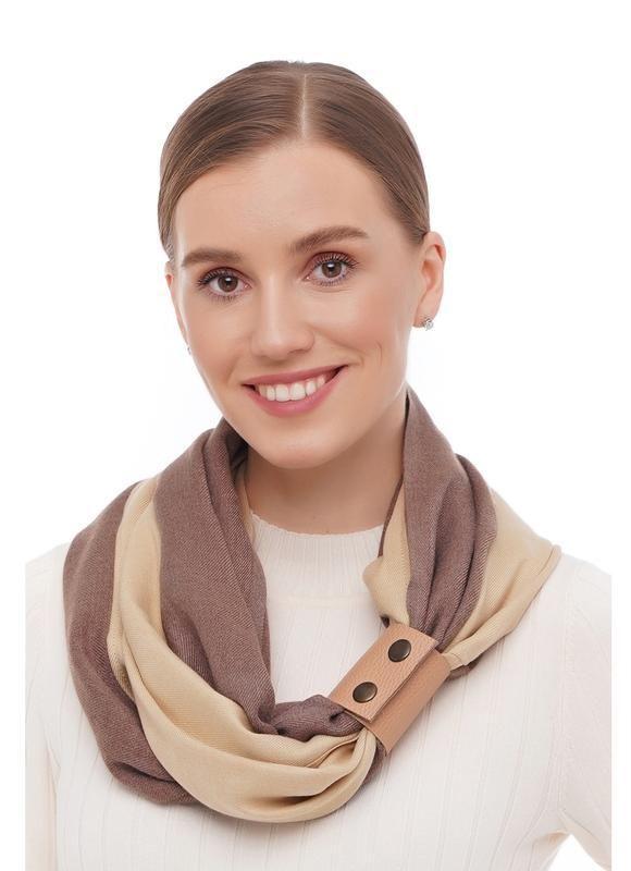 Стильный, трендовый, очень удобный, комфортный и теплый 100% кашемировый шарф. . Размер 180х80см. Оригинальный дизайн. Двухцветный двойной шарф. Застежка: натуральная кожа на заклепках.. Ткань 100% кашемир. Универсальный аксессуар. Можно носить как двойной шарф, украшенный модным кожаным браслетом или как накидка на голову + шарф . Отличная идея для подарка. Подарочная упаковка ( под заказ именная)