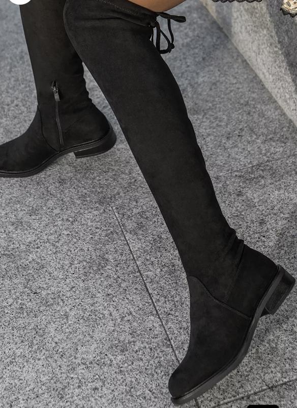 Чорні замшеві ботфорти на низькому каблуку ,розмір 38