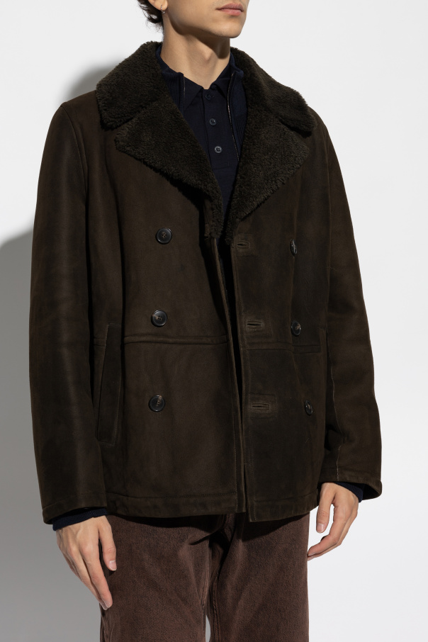 Introducing the Double-Breasted Shearling Coat, a harmonious blend of timeless elegance and unparalleled craftsmanship. Designed by the illustrious Yves Salomon, this exquisite coat is a testament to the brand's rich heritage and dedication to luxury. Featuring a double-breasted silhouette with a wide collar, this coat boasts a classic and sophisticated appearance. The sleek, straight cut extends slightly below the hips, providing additional warmth while maintaining a refined look. Crafted from premium lambskin, the exterior exudes durability and luxury, while the interior and collar are lined with plush, soft shearling for ultimate comfort and insulation. The coat is adorned with large, black buttons arrayed in two rows, a distinctive feature of this timeless design. Practicality meets style with two generous front pockets, offering both convenience and aesthetic appeal. The rich, dark green hue imparts a sophisticated and timeless quality, ensuring this coat remains a staple in your wardrobe for years to come. The meticulous stitching and finishing details, evident in the images, reflect the high-quality craftsmanship synonymous with the Yves Salomon brand. Modeled to perfection, this shearling coat epitomizes both elegance and functionality, making it an ideal choice for various occasions, from formal events to casual outings. Why Choose This Product? Designed by the renowned Yves Salomon, a leader in luxury winter wear. Crafted from 100% premium lambskin for exceptional quality and durability. Lined with soft shearling for added warmth and comfort. Classic double-breasted silhouette with a sophisticated dark green color. Features two large front pockets and stylish black buttons.