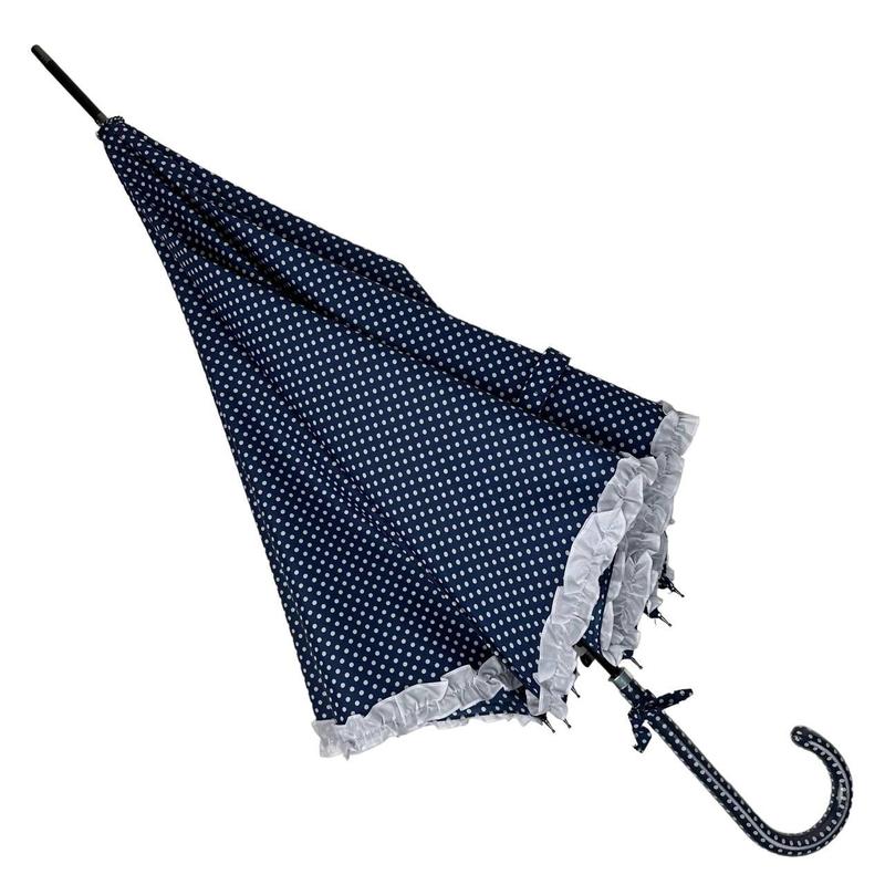 Зонтик трость с рюшами в горошек на 8 спиц - надежный защитник от дождя и