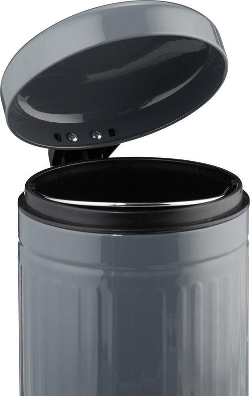Круглый мусорный бак с педалями занимает мало места в ванной комнате, кухне,