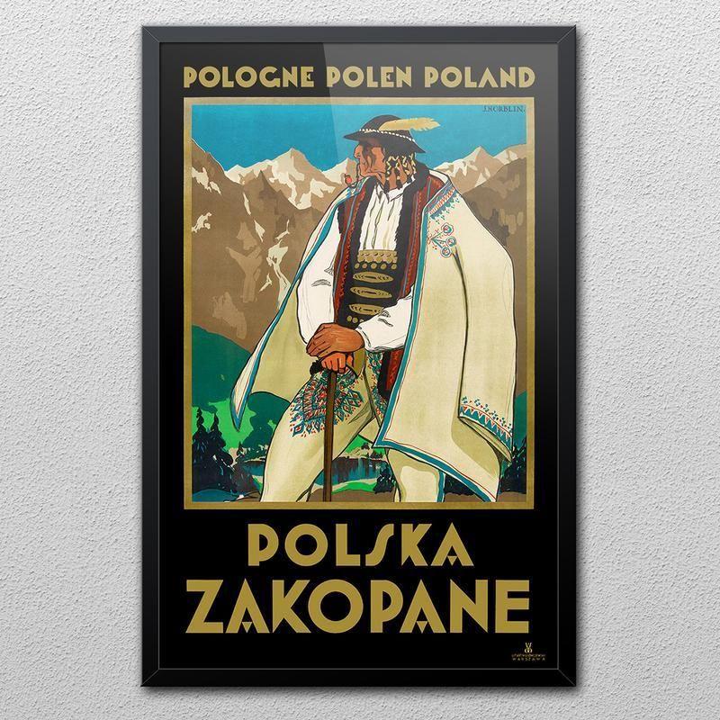 Туристический постер 1925 года с рекламой города Закопане, Польша. Это больше польский город у подножия Татр, а также визначий центр зимних видов спорта. Автор иллюстрации Стефан Норблин (1892 - 1952) — польский художник, иллюстратор, архитектор и модельер. Среди прочего также рисовал модернистские рекламные постеры и картины в стиле Арт-деко. Размер 56х88 см.