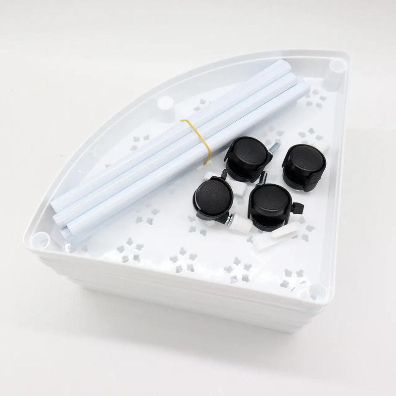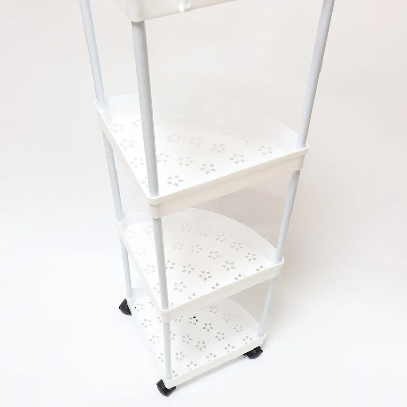 Угловой стеллаж для ванной комнаты на 4 яруса – это практичный и стильный аксессуар, позволяющий максимально использовать пространство вашего дома. Угловой дизайн стеллажа позволяет эффективно использовать угловые участки ванной комнаты, обычно остающиеся неиспользованными, обеспечивая дополнительное хранение без лишних занятий пространства.С помощью 4 ярусов угловая полка предоставляет достаточно места для размещения различных предметов, таких как полотенца, косметика, мыло, шампуни и другие аксессуары. Оснащенная практичными колесиками, она легко перемещается по дому, обеспечивая удобство в уборке и доступе к предметам. Изготовлена из качественного пластика, который устойчив к влаге и легко моется.