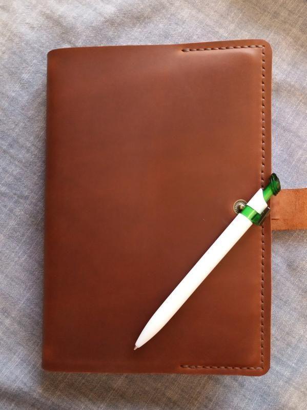 Обложка на блокнот ежедневник формата А5 выполнена из кожи crazy horse. Прошита вручную прочной нитью. Прослужит Вам долгие годы. Перед заказом просьба написать точные размеры блокнота под который эта обложка будет использована.