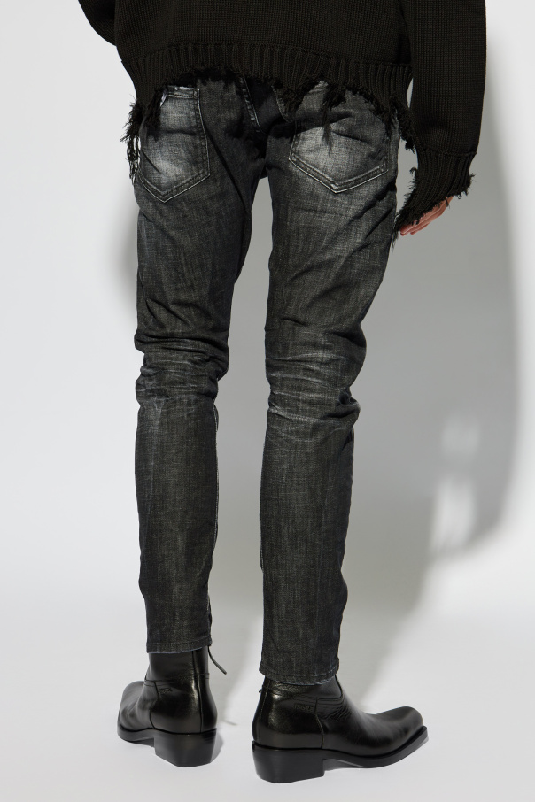 Introducing the Dsquared2 Sexy Twist Skinny Jeans, a true embodiment of sartorial elegance blended with urban edge. Crafted from a premium blend of 98% cotton and 2% elastane, these jeans meld comfort with a second-skin fit. The dominant black hue, accented with a subtle, horizontal striped pattern, creates an alluring look of worn material, while the faded, delicately aged finish with white and lighter streaks throughout lends a desirably "worn-in" appearance. The front of the jeans showcases a unique asymmetrical zipper fastening, embellished with the "DSQUARED2" logo, and a series of silver buttons engraved with the brand's name and logos, adding a touch of distinguished flair. Purposeful distressing and wear marks inject character, with strategically placed rips enhancing their urban appeal. The rear pockets bear the distinctive stitch detailing and embellishments that mark the aesthetic of the brand’s jeans. The skinny fit is meticulously designed to hug the body, accentuating the silhouette, while the narrow legs taper gracefully towards the ankle, ensuring a sleek and modern profile. The visible seams throughout the jeans add structure and shape, further elevating the product’s appeal. Why Purchase These Jeans? Exquisite blend of style and comfort, with high-quality cotton and a touch of elastane for flexibility. Unique aged and distressed design for an effortlessly cool, "lived-in" look. Signature DSQUARED2 asymmetrical zipper and engraved silver buttons for an exclusive touch. Skin-tight fit that beautifully sculpts and enhances your silhouette. Detailed craftsmanship and distinct detailing synonymous with the DSQUARED2 brand.
