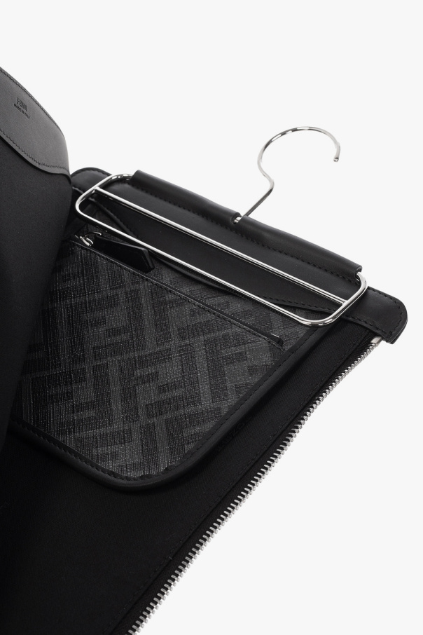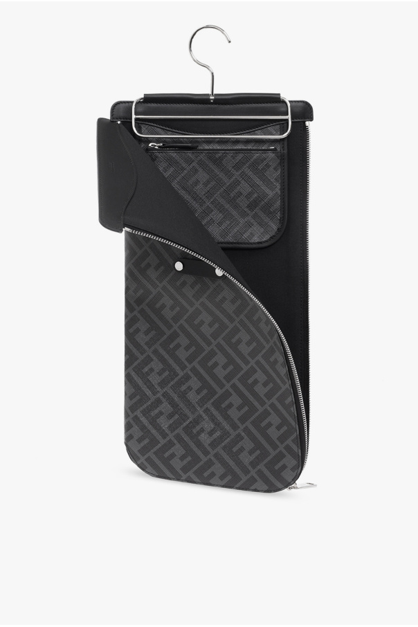 Grey and black tie case from Fendi. Made of faux leather, this model features a zip fastening, FF motif, hanger, silver-tone metal hardware and one internal compartment with one zip pocket.