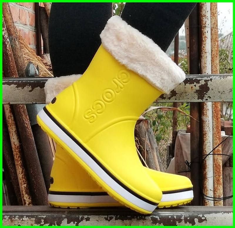 Жіночі Гумові Напівчоботи CROC$ Жовті Чоботи Крокси Теплі Зимові (розміри: 36,37,38,39,40,41) - 8