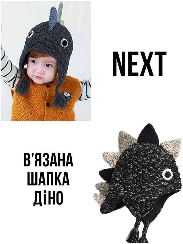 Забавная, уютная и теплая вязаная 3D шапка Дино от бренда Next 🦖