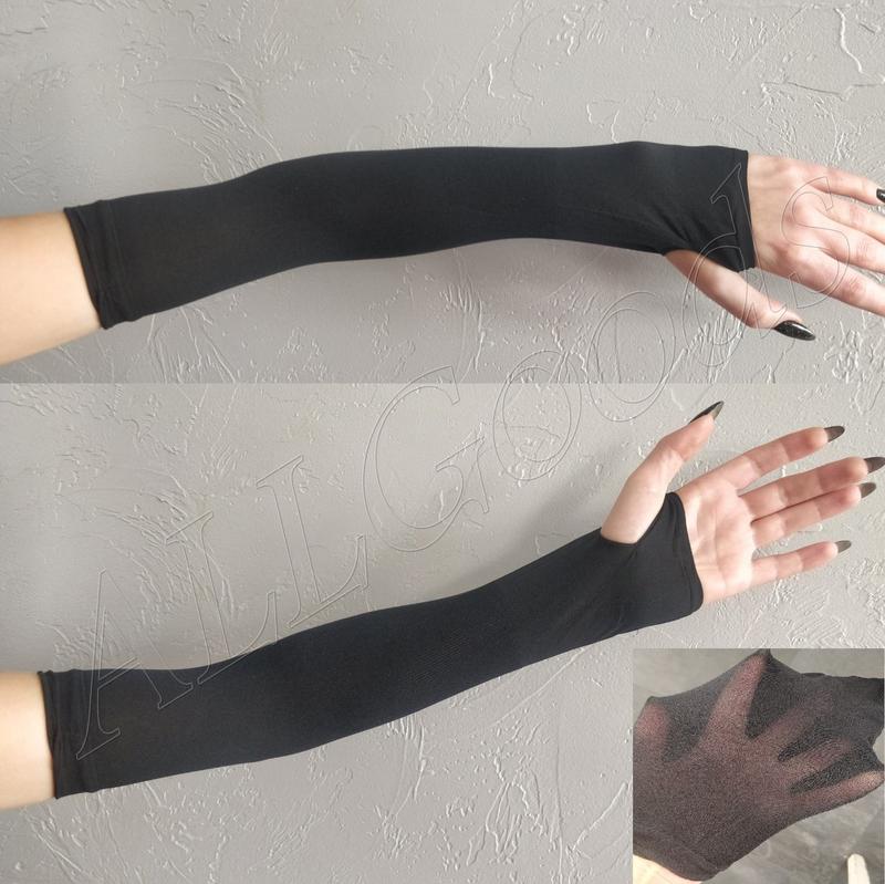 Тонкие легкие митенки-рукава, похожи на плотный капрон, отлично подойдут, как
