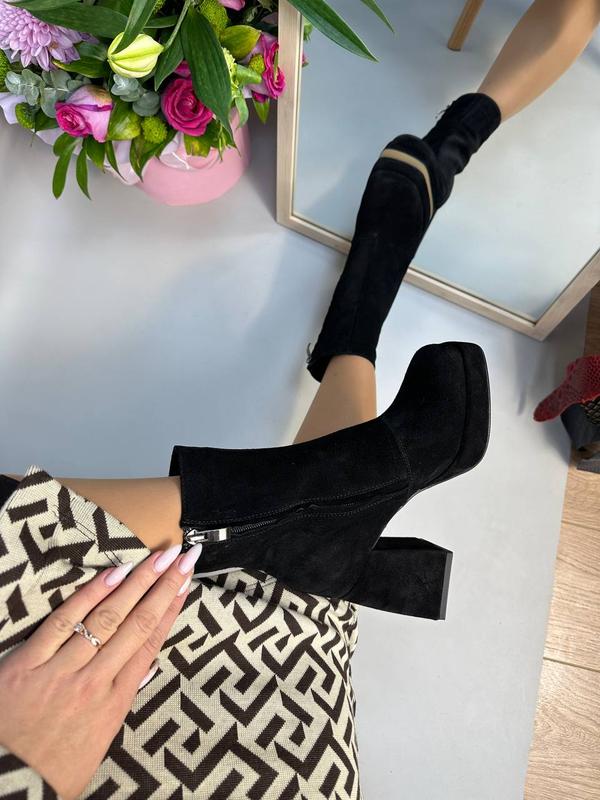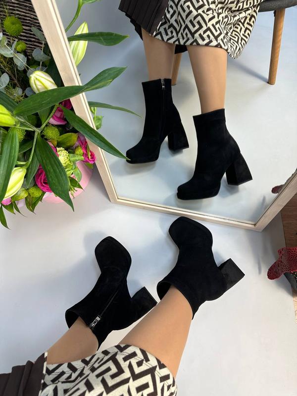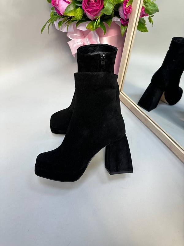 Висота виробу без підошви по боковому шву 19 см Висота каблука 9 см, 2 см платформа Колір по бажанню з нашої палітри. Можна створити свій особливий дизайн 👍 Сезон по бажаннюСтан: НовийКолір:- Чорний