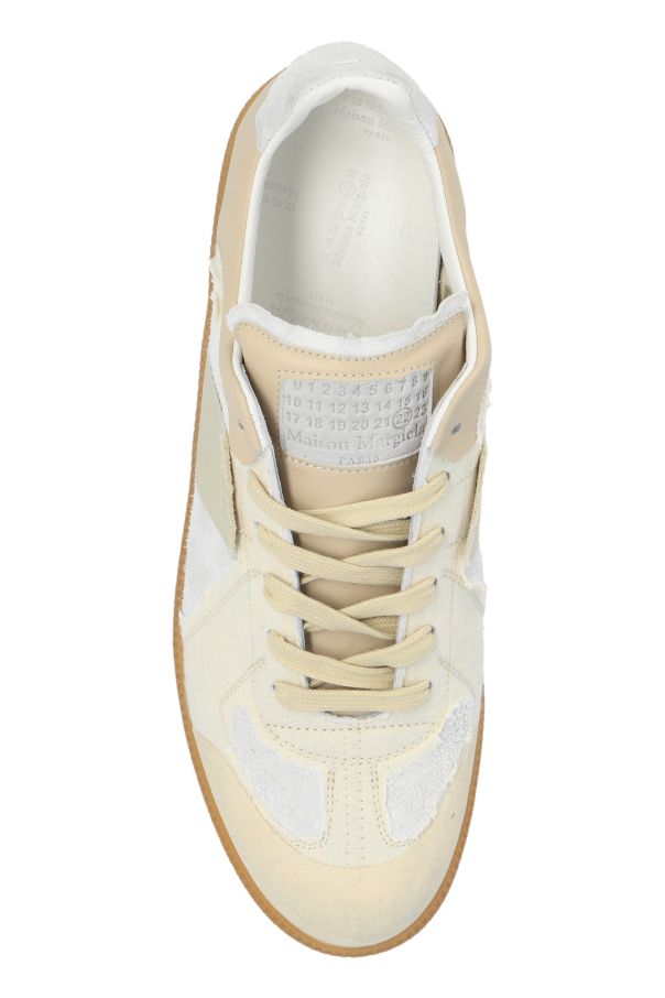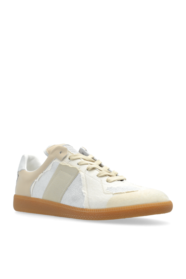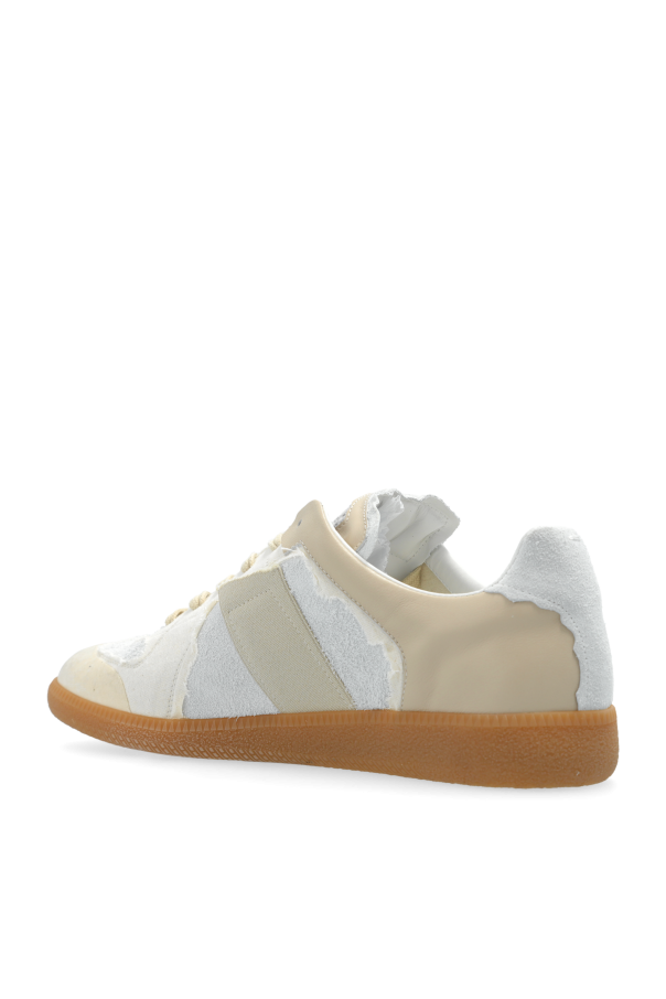 Introducing the epitome of refined athletic elegance, the Maison Margiela Sporty Sneakers from our exclusive collection. These low-top sneakers are meticulously crafted to provide an impeccable blend of style and comfort. Designed with a classic, sport-inspired silhouette, these sneakers feature a rounded toe and a durable gum sole, ensuring a sophisticated yet casual allure. The exterior is an exquisite amalgamation of suede and leather, predominantly in a creamy hue, with asymmetrical shades adding a distinctive touch. Attention to detail is paramount, as evidenced by the signature label on the tongue, an emblematic marker of Maison Margiela's exclusive designs. Cream-colored laces harmoniously complement the aesthetic, while subtle stitching and refined finishes adorn the interior and rear sections. Engineered for unparalleled comfort, these sneakers boast a padded insole and a soft inner lining, making them a versatile choice for both everyday wear and more formal athletic ensembles. Why Choose This Product? Crafted from premium suede and leather for a luxurious feel. Classic low-top design with a modern twist. Signature label on the tongue for a touch of exclusivity. Padded insole and soft inner lining for ultimate comfort. Versatile style suitable for various occasions.