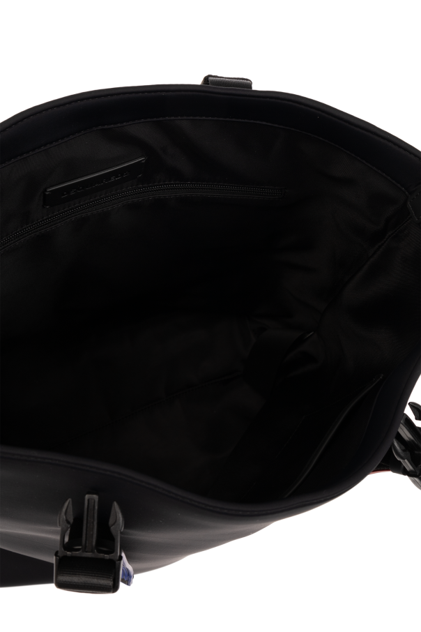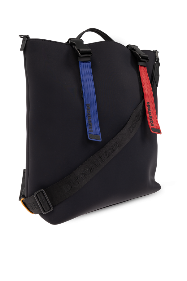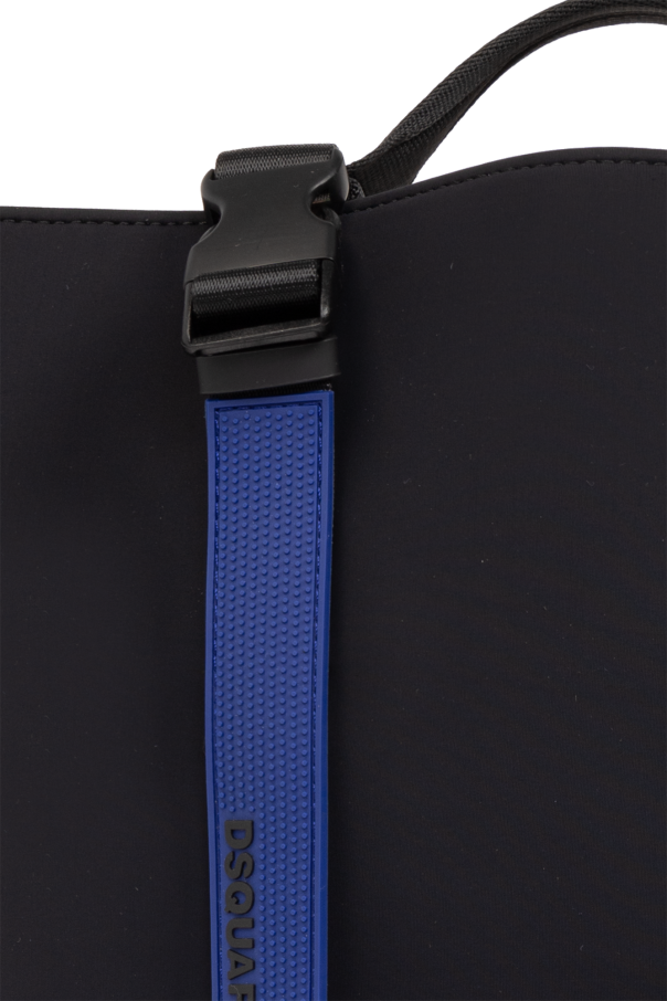 Introducing the epitome of sophistication and functionality - the Dsquared2 Large Men's Shoulder Bag. This exquisite accessory, crafted from a smooth, matte material in a dominant black hue, exudes a timeless elegance. Its square shape, softened by rounded corners, presents a silhouette that is both modern and classic. The bag features two hand straps atop and an adjustable shoulder strap in a striking blue and red contrast, adorned with the brand's name for an unmistakable mark of luxury. This shoulder strap, not only functional, brings a vibrant pop of color and identity to the piece. The front of the bag is accentuated with triangular decorative elements, a nod to the designer's attention to detail and flair for the unique. Practicality meets style with a zipper closure in contrasting colors, blending aesthetics with utility. The material’s resilience suggests waterproof or easy-clean properties, making it an ideal companion for the discerning man on the go. Inside, the bag reveals a spacious interior with an additional zip pocket, enhancing its functionality. Why Purchase This Product? Elegant Design: A sleek, black matte finish paired with distinctive design elements. Signature Branding: Bold, contrasting shoulder strap with brand name for a touch of exclusivity. Functional Elegance: Waterproof or easy-clean material with a spacious interior and additional pocket. Decorative Details: Unique triangular elements and zipper closure add a decorative touch.