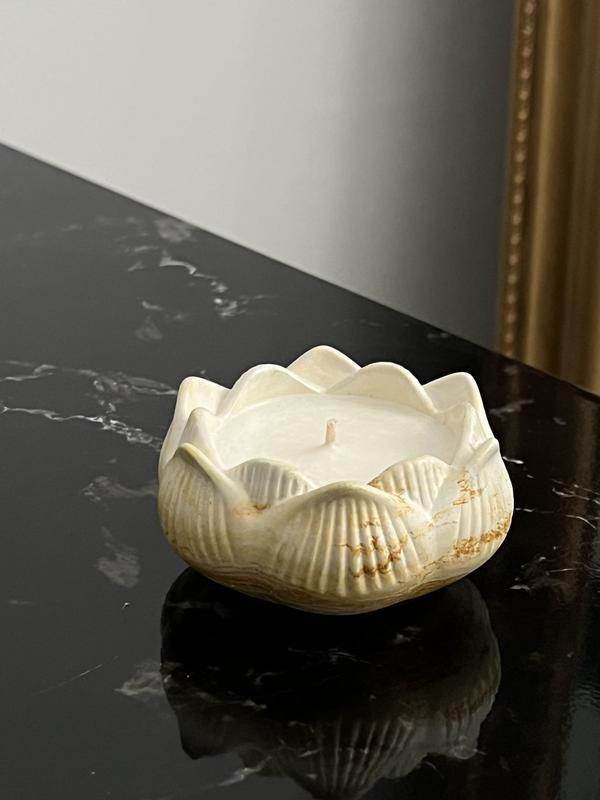 Ароматическая свеча «Лотос» выполнена из экологичного, чистого 100% соевого воска. Свечанок из высокопрочного гипса, обработанный декоративным лаком, и будет продолжать служить отличным декором для вашего дома, подставкой для чайной свечи, и т.д. Это отличный подарок на любой праздничный повод родным и близким людям, дарящим уют и теплоту. Деревянный фит слегка потрескивает и создает уютную атмосферу.