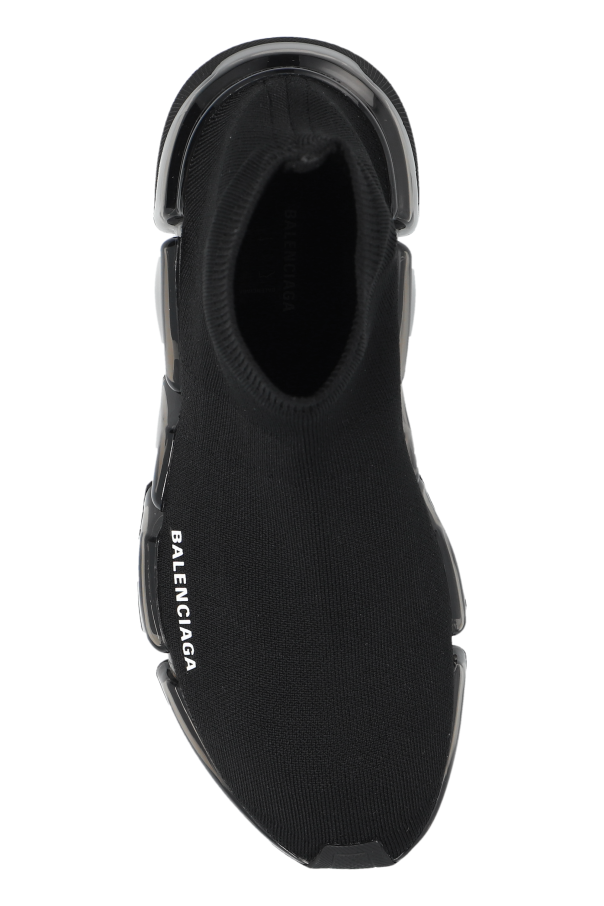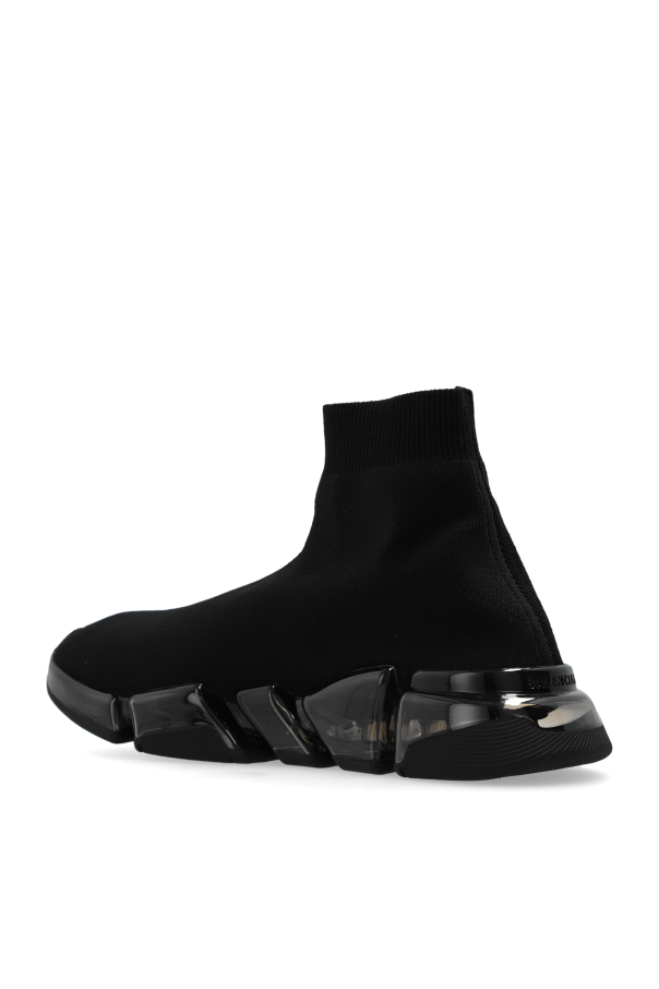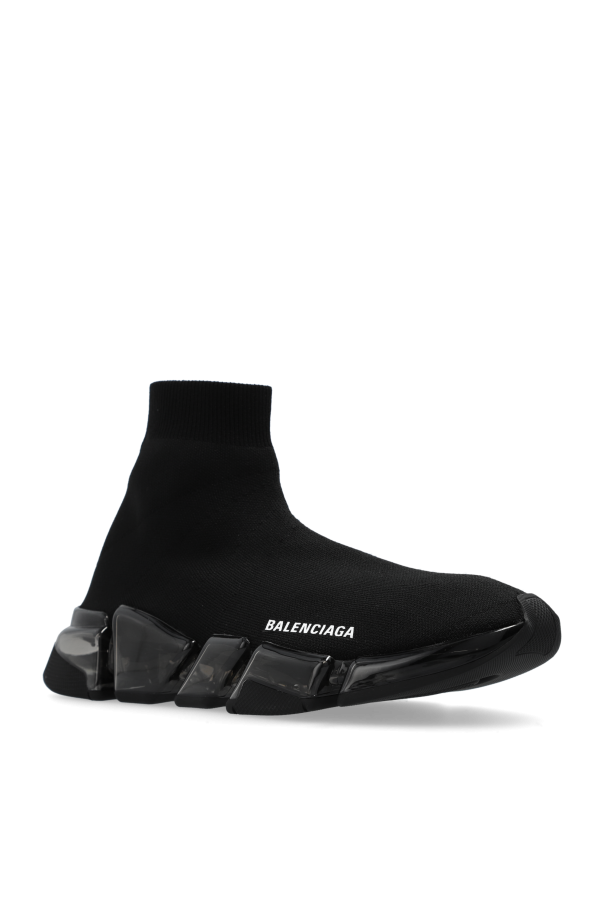 Introducing the Speed 2.0 High-Top Sneakers from the illustrious house of Balenciaga. These sneakers epitomize the perfect amalgamation of cutting-edge design and unparalleled comfort. The sneakers feature a distinctive high-top silhouette, fashioned from a flexible, sock-like upper that conforms effortlessly to the foot. This provides an exceptional fit and supreme comfort. The robust, segmented sole not only enhances the futuristic aesthetic but also offers enhanced cushioning and stability. Crafted from premium breathable materials, both inside and out, these sneakers ensure optimal comfort and ventilation. A bold "BALENCIAGA" inscription adorns the exterior, affirming the brand's prestige. The substantial, segmented outsole is designed for superior shock absorption and walking ease. Why Choose This Product? Exclusive Design: Unique high-top shape with a modern, sporty look. Premium Materials: Breathable and flexible upper material paired with a durable, segmented sole. Brand Prestige: Iconic "BALENCIAGA" logo prominently displayed. Comfort and Stability: Thick, cushioned sole providing excellent shock absorption. Versatile Style: Perfect for both casual and high-fashion ensembles.
