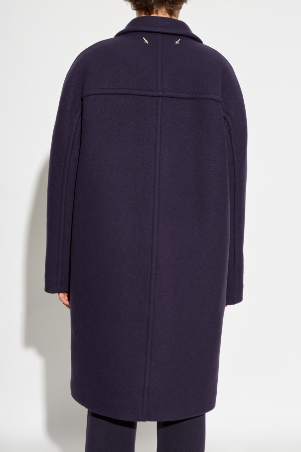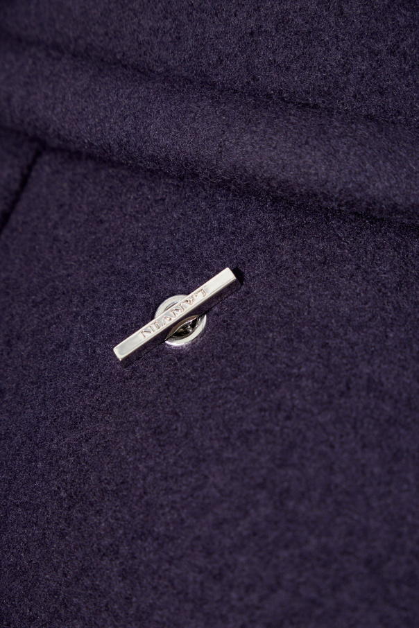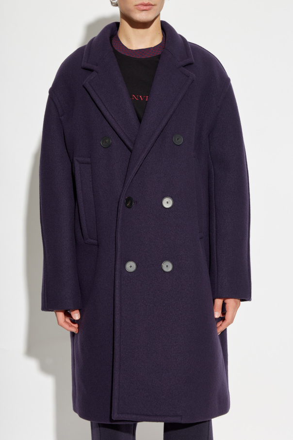 Presenting the Wool Coat from the esteemed house of Lanvin, the epitome of sartorial elegance. This classic, straight-cut coat with a subtly oversized fit exudes modern sophistication. Crafted from the finest quality wool, it guarantees warmth and unparalleled comfort. The coat's refined design features a classic collar with lapels and an exquisite double-breasted closure adorned with six dark buttons. Its deep, rich purple hue ensures a distinguished and elegant appearance, making a powerful statement in any casual setting. Two large, rectangular pockets are thoughtfully stitched onto the front, combining practicality with style. On the inner label, the iconic Lanvin logo is a testament to its luxurious heritage, while a decorative metal tab with the designer's engraved name embellishes the rear beneath the collar. This coat is not just a piece of clothing; it's a reflection of Lanvin's rich legacy and commitment to exquisite craftsmanship. Why Choose This Product? Exquisite 100% Wool material ensures warmth and comfort. Timeless design with a modern oversized fit. Elegant double-breasted closure with sophisticated dark buttons. Functional and stylish with two large front pockets. Iconic Lanvin branding for a touch of luxury. Unique decorative metal tab accentuates the rear.