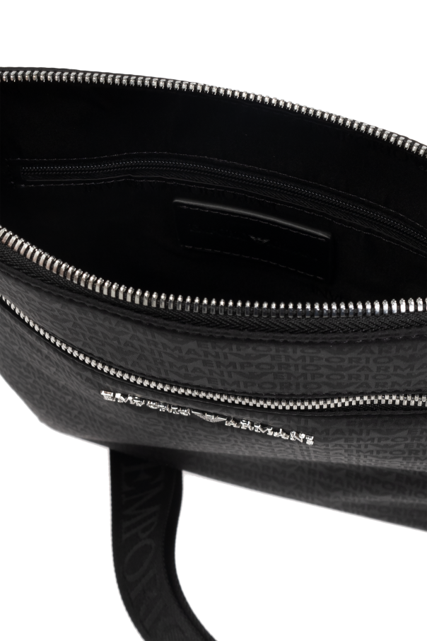 Introducing the Emporio Armani Shoulder Bag, a paragon of sophistication from our exclusive collection. This rectangular, compact bag epitomizes elegance with its repetitive "EMPORIO ARMANI" print, making it immediately recognizable and stylish. Crafted from a durable, subtly textured synthetic material, this bag exudes both resilience and refinement. The front of the bag is adorned with a sleek silver metal zipper, adding a touch of modernity. The adjustable shoulder strap, embellished with the "ARMANI" inscription, ensures a perfect fit, while the metal buckle enhances its functional allure. Inside, the bag boasts a zippered pocket, providing secure storage for your essentials, complemented by an inner compartment and a slip pocket for added convenience. The dominant black color accentuates its timeless appeal, making it a versatile accessory for any occasion. Why Choose This Product? Distinctive Design: Prominent "EMPORIO ARMANI" print for an unmistakable look. Premium Materials: Made from high-quality, durable synthetic material. Functional Details: Adjustable strap with metal buckle, inner zippered pocket, and slip pocket. Elegant Color: Classic black color for timeless style. Designer Label: Authentically crafted by Emporio Armani, synonymous with luxury and innovation.