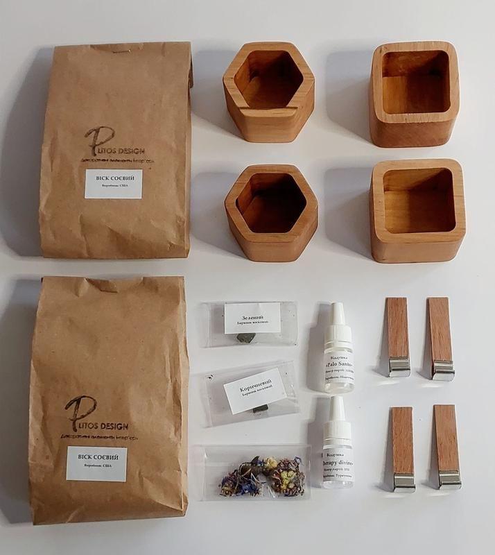 • Набір для створення 4 соєвих свічок з ковшиком та термометром• Набір для створення 2 соєвих свічок з ковшком