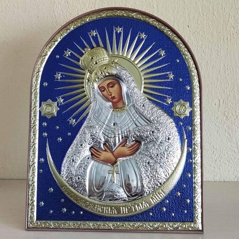 покрытием серебра 925 пробы, позолоты. Лик выполнен методом шелкографии