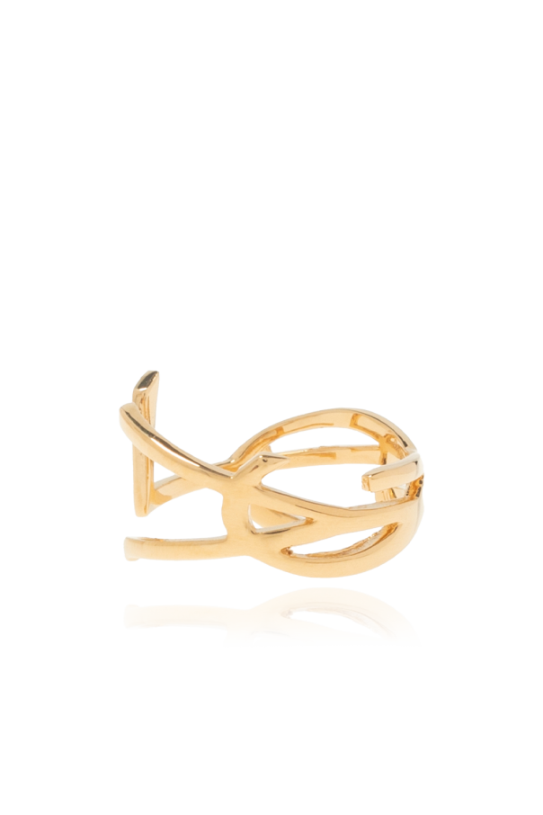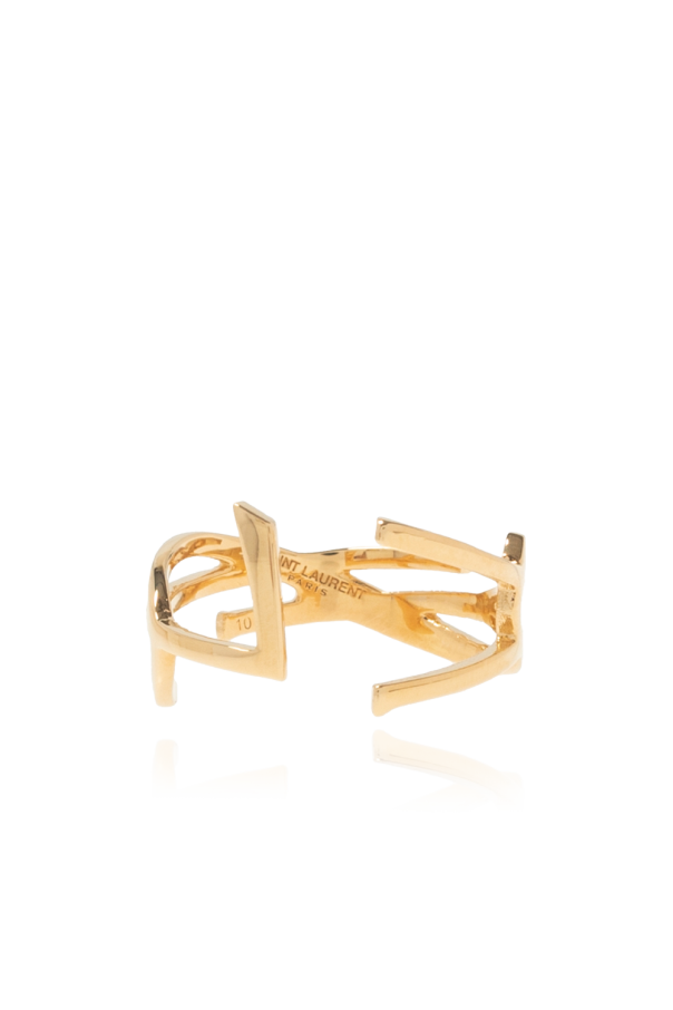Gold-tone ring from Saint Laurent. Made of brass, this item showcases the YSL initials.