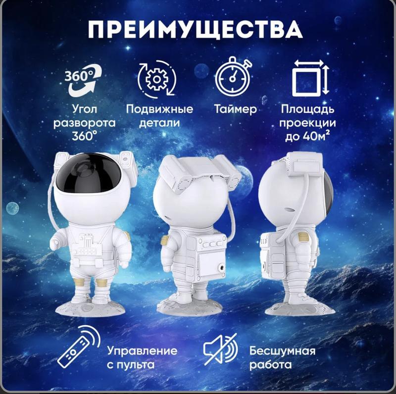 Проектор в образі космонавта покаже вам проекцію звідного неба, а також усієї Галактики.