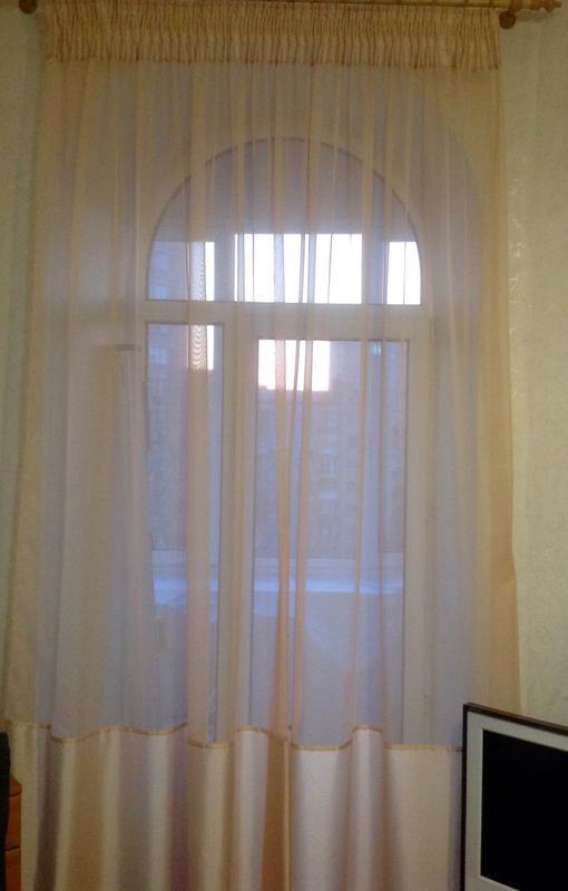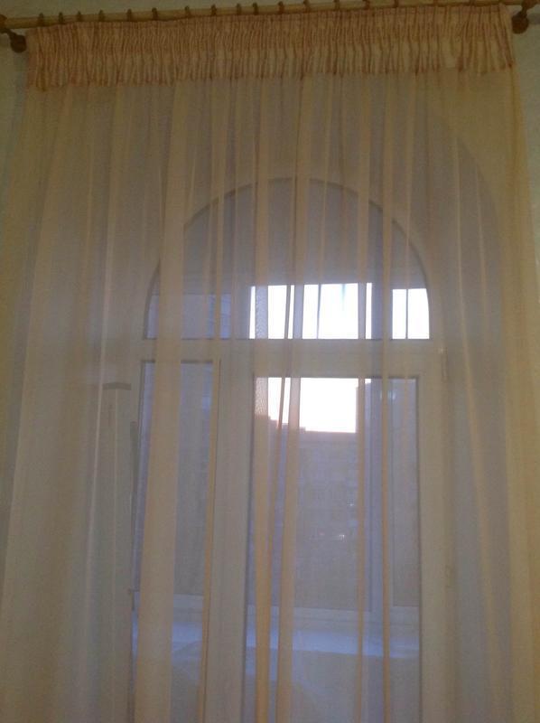 Тюль бежевая комбинированная из вуали и тафты ширина 3 метра без сборки подойдет на карниз шириной 1,50 -1,80 высота 2.80 Состав: 100% полиэстер