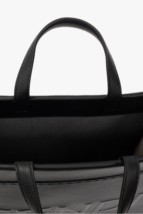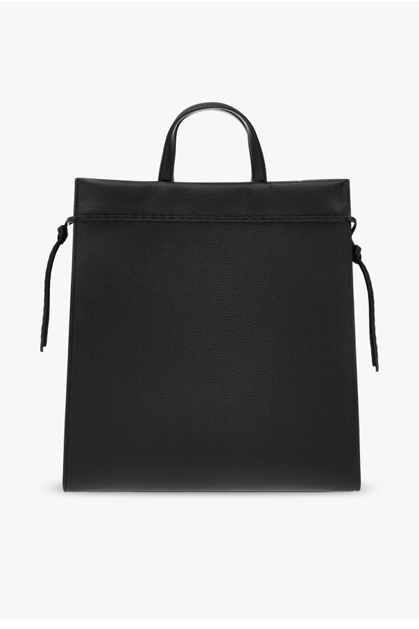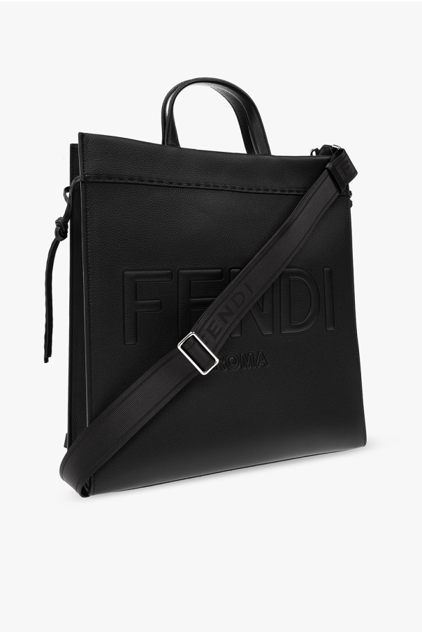 Black ‘Go To Medium’ shoulder bag from Fendi. Made of calf leather, this design is decorated with an embossed logo and decorative knots on the sides. It is complete with two half-round handles, detachable and adjustable fabric strap with a logo, one internal compartment and silver-tone metal hardware.