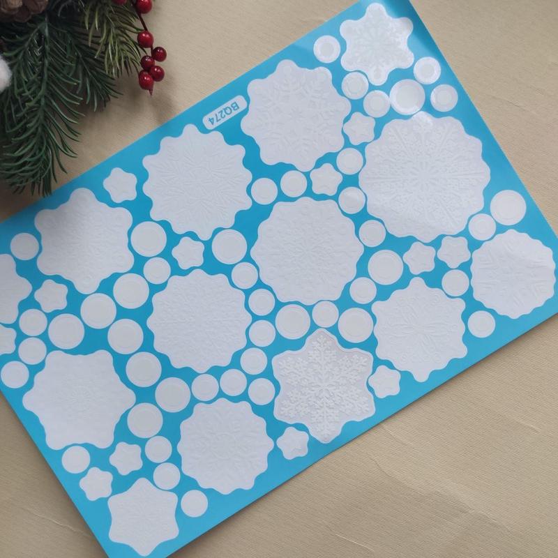 Чудовий декор для створення казкової атмосфери. У комплекті різні елементи, як на картинці. Розмір листа: 30*19,5см. На аркуші 71шт декору. Розмір: сніжинки 14шт рамером від 7см до 4см; зірки 12шт 1,5см; решта кружки 1,5-1см. Кріпляться на гладку поверхню, багаторазові.