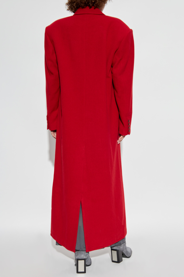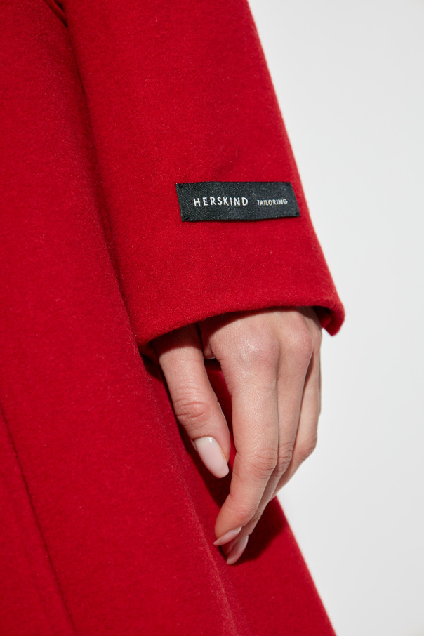 Introducing the Drew Coat from HERSKIND's exclusive collection – a bold statement of elegance and sophistication. This long, red coat, crafted from a premium blend of polyester, wool, and polyamide, exudes luxury and comfort. The outer layer is meticulously designed, while the inner lining of 100% acetate ensures a smooth and refined fit. Boasting a minimalist yet modern appeal, the Drew Coat features a single button closure at the front, complemented by wide lapels and long sleeves. Its straight cut and ankle-length design make it a versatile addition to any wardrobe. The two subtly integrated side pockets enhance its sleek silhouette, while the small rectangular "HERSKIND TAILORING" patch on the left cuff adds a touch of distinction. The rear slit provides ease of movement and comfort, making it an ideal choice for colder days. Styled effortlessly with a long, semi-transparent dark dress and heeled boots, the Drew Coat proves its adaptability and timeless charm. Why Choose This Product? Premium Material: High-quality blend of polyester, wool, and polyamide for ultimate comfort and durability. Elegant Design: Classic straight cut with wide lapels and ankle-length for a sophisticated look. Functional Details: Discreet side pockets and a rear slit for enhanced practicality and ease of movement. Exclusive Branding: Signature "HERSKIND TAILORING" patch on the left cuff for a unique touch. Versatile Styling: Perfectly pairs with both casual and formal outfits, showcasing its timeless elegance.
