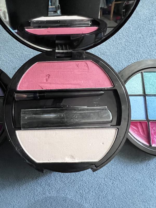 Удобный,компактный набор.Есть кисть для румян и блеска.