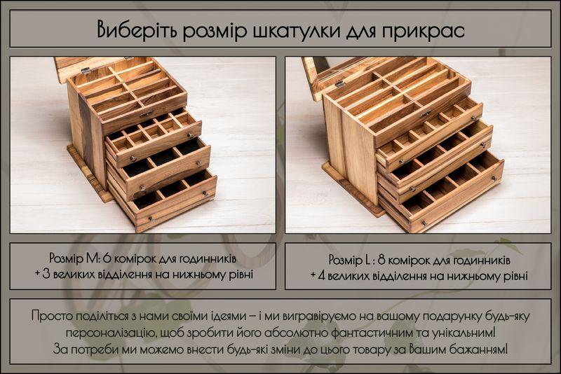 Зроблено в Україні?:Производство ,Тип:Ящики , Шкатулки ,Материал:Дерево ,Назначение:Для часов , Для украшений ,Описание