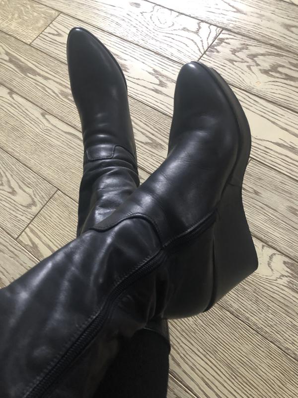 Класні.Круті.В чудовому стані-немає ніяких недоліків.Танкетка обтягнута шкірою-немає ніяких пошкоджень.Під пальчиками 2 см,на п‘яточці 10 см.Є коробка.За рахунок того,що є танкетка під пальчиками,можна носити зимою.Утеплені флісом.На стопу 25,5 см.Шкіра дуууже хороша!